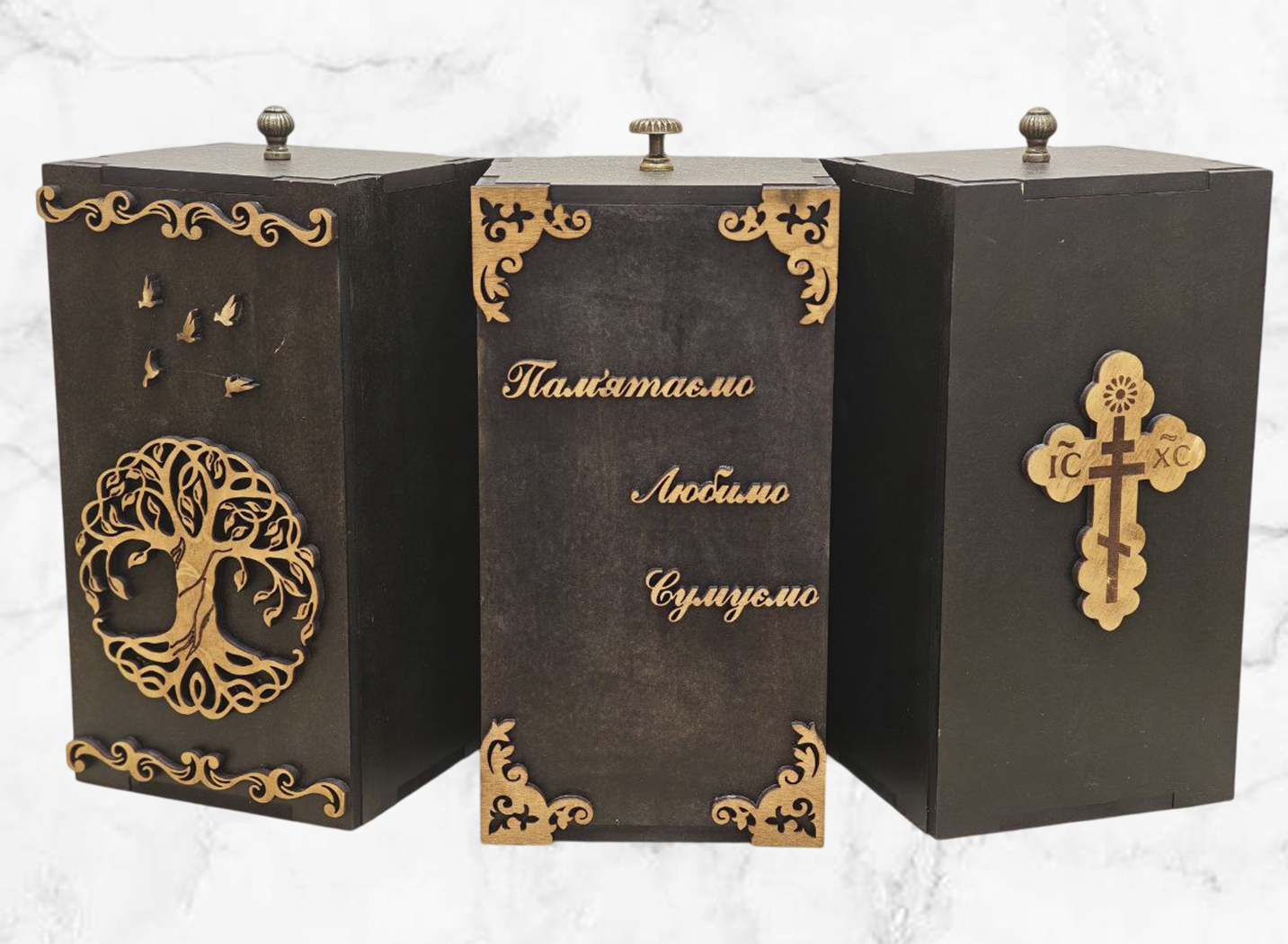 Спеціально розроблені урни для праху з дерева для похорон забезпечують екологічне та естетичне завершення церемонії кремації, поєднуючи в собі природну теплоту матеріалу та довговічність виконання. Ми пропонуємо урни для праху з дерева для похорон з можливістю індивідуального гравіювання, що робить кожну одиницю унікальним символом вічної пам’яті про близьку людину.